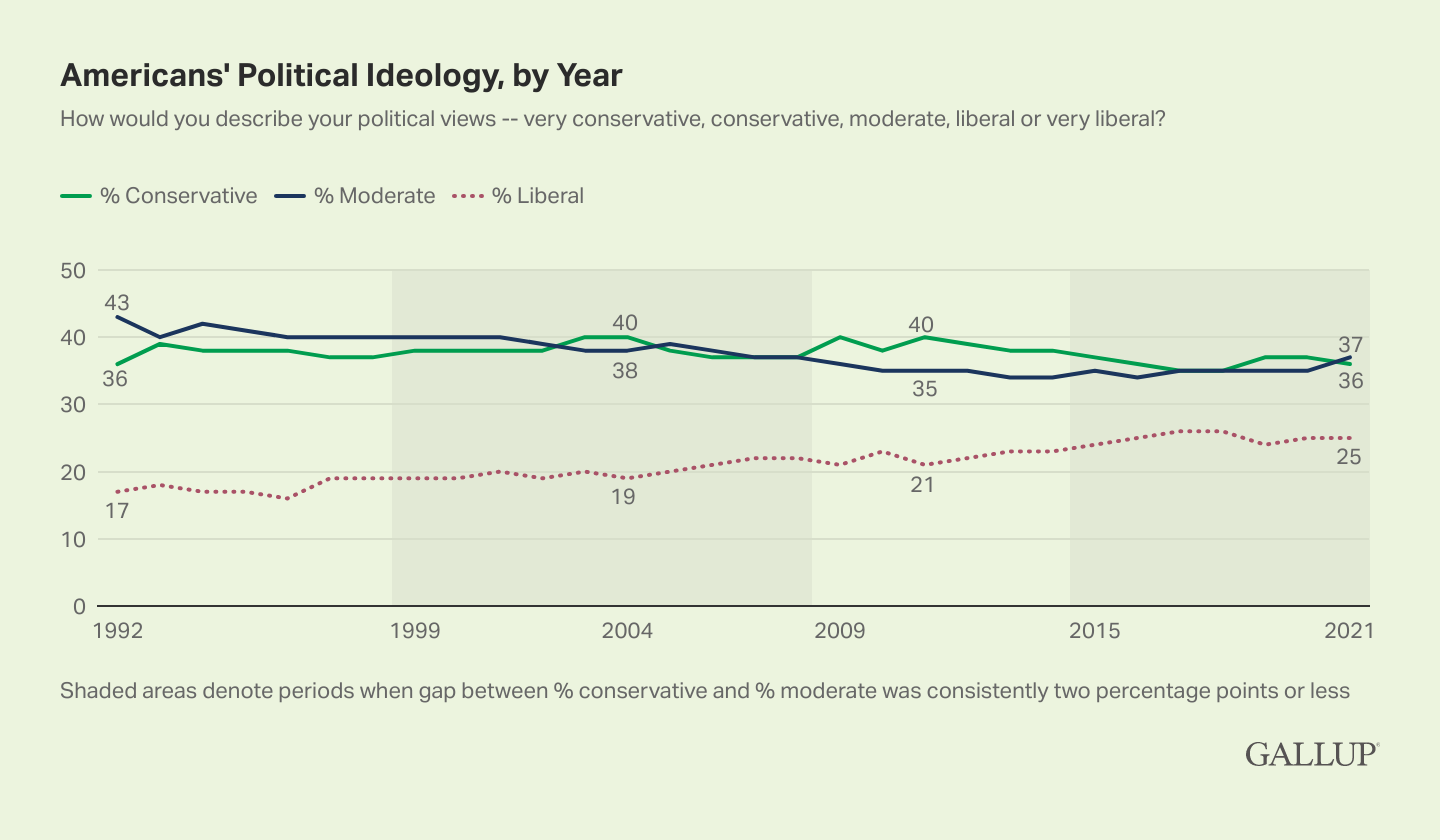 At the heart of Deciding to Win is a simple claim: most voters identify as moderate or conservative, not liberal. Gallup polling over many decades is unequivocal: about 71% of Americans call themselves moderate or conservative.